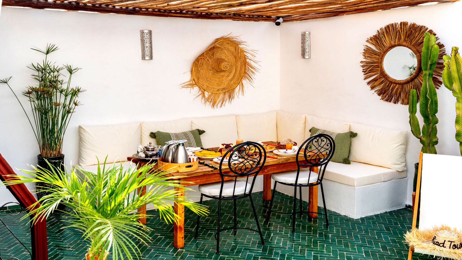 Derrière la porte discrète du Riad Touria, s’ouvre un monde intime où l’Orient se réinvente dans l’élégance. Les volumes apaisants, les matières nobles et la lumière qui caresse les murs créent une atmosphère raffinée, à la fois moderne et empreinte d’authenticité.