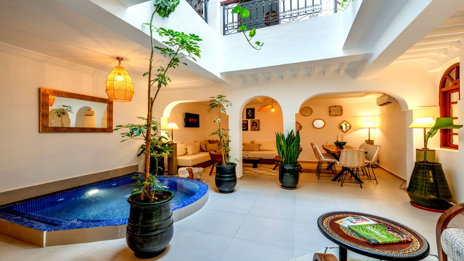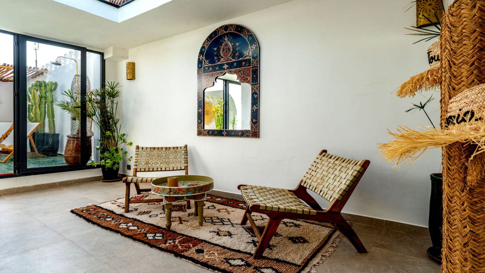 Entièrement rénové en 2024, le riad a su préserver son âme ancienne tout en adoptant un style minimaliste et élégant. Un refuge rare, où le silence intérieur contraste avec la rumeur vibrante de la médina toute proche.
