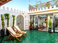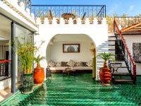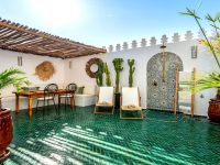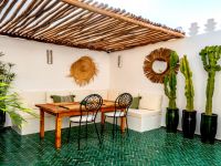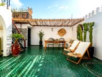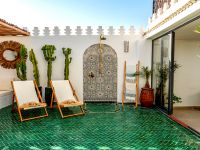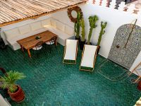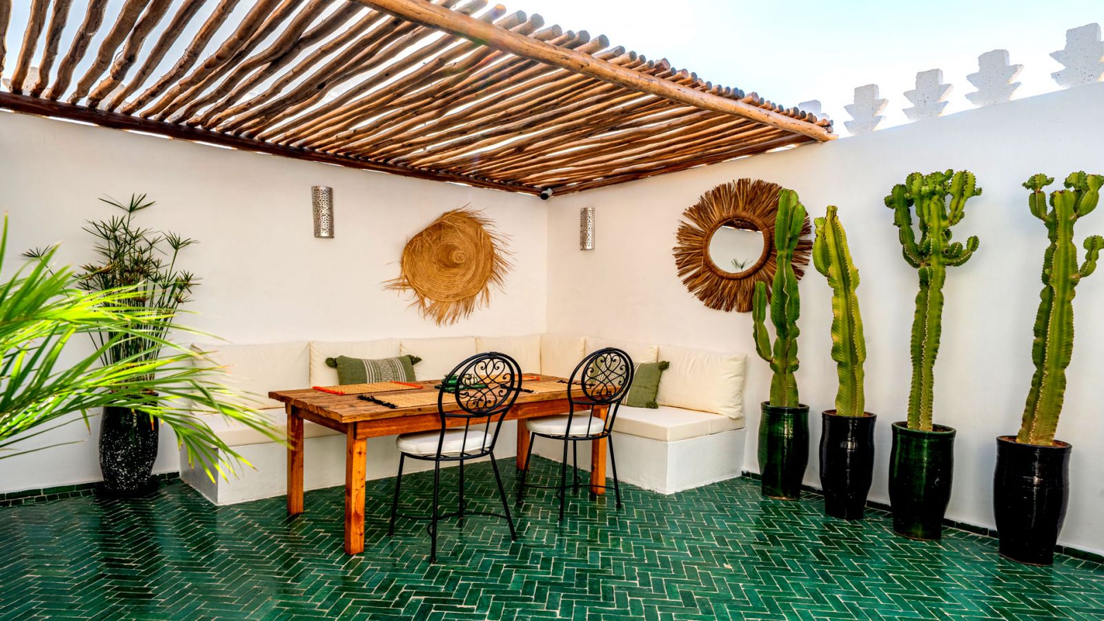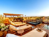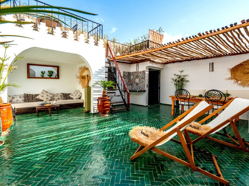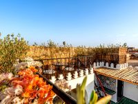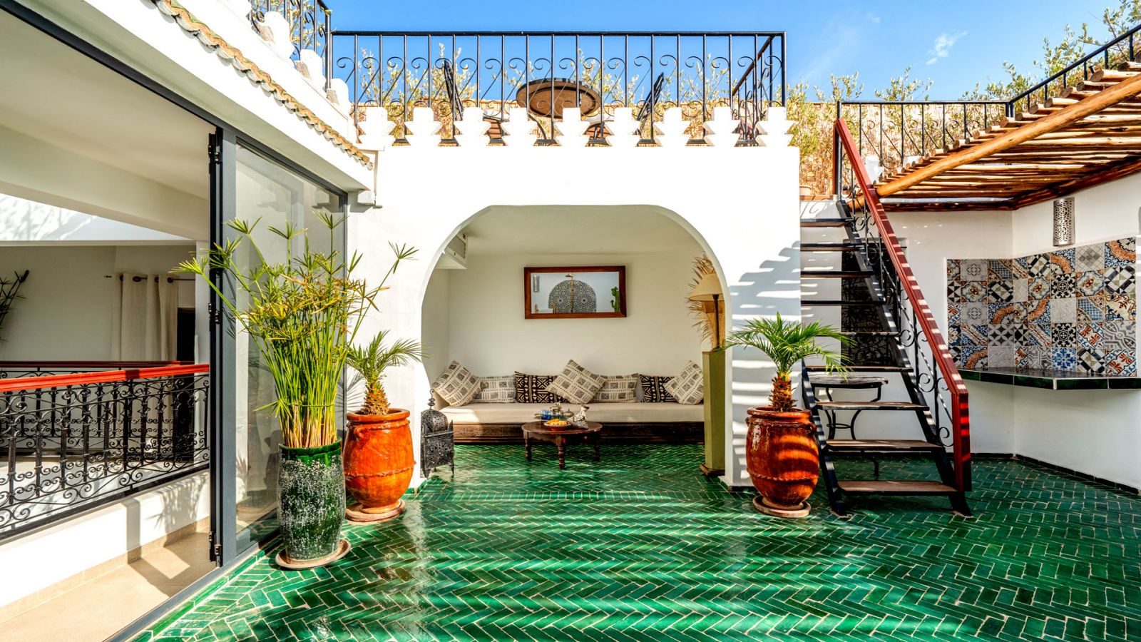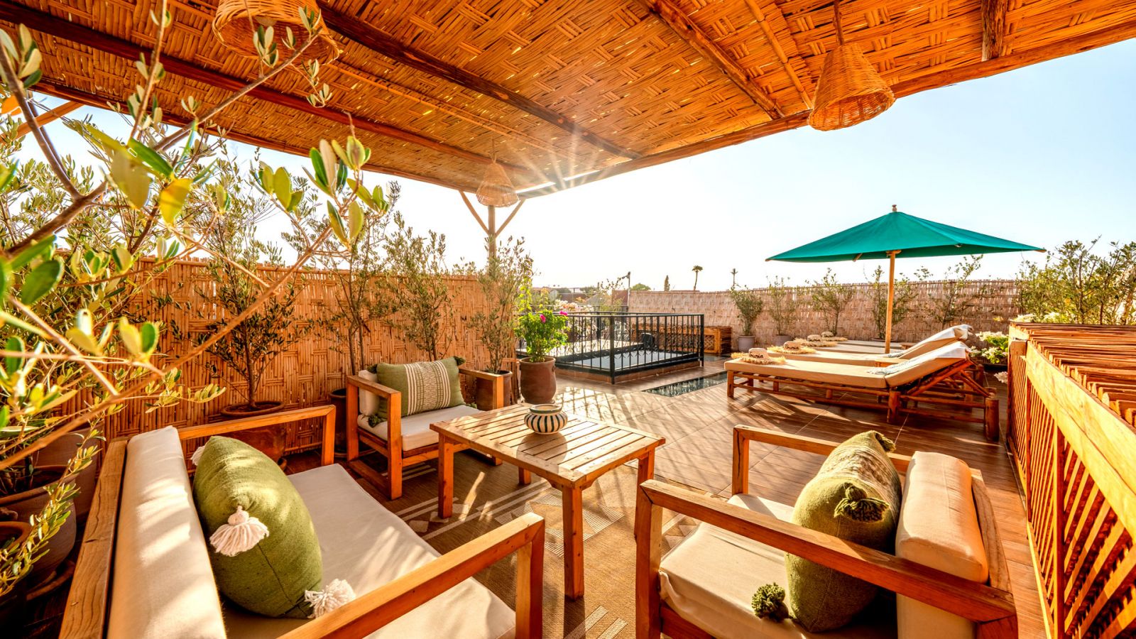 Les terrasses du Riad Touria dominent les toits de la médina comme un refuge suspendu, où la lumière de Marrakech se fait plus douce. Entre coins ombragés, transats et douche rafraîchissante, chaque espace invite au repos et à la contemplation.